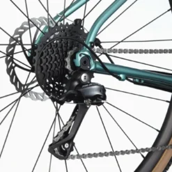 Gravel with Al frame and carbon fork equipped with Shimano Sora kit.