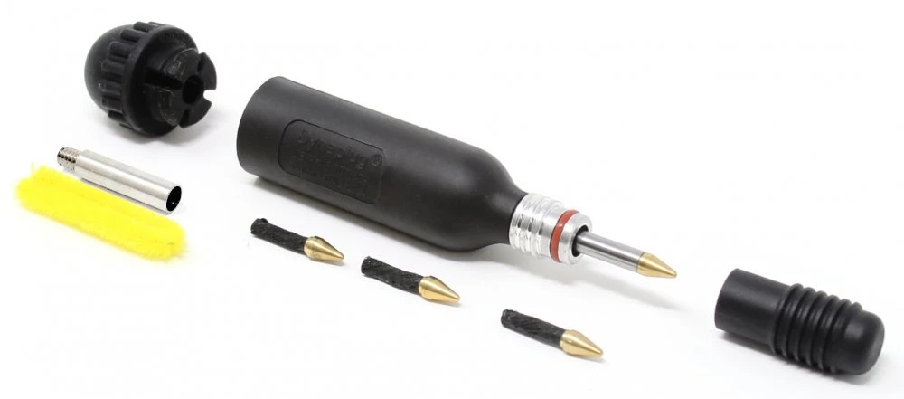 Tubeless tire repair kit in situations where the sealant no longer prevents pressure drop. This is a simple and effective solution to the defect, the repair wick has closed the hole and you can continue driving in an instant. The case measures 125 mm in length, including its contents, weighs only 35 g, so it easily fits in the pocket of a jersey or in a saddlebag.