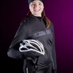 Wind and water resistant women’s cycling jacket.