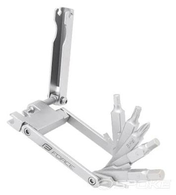 Compact tool set. Includes riveter, opener, center key, Allen key 2, 2.5, 3, 4, 5, 6mm, Phillips / flat screwdriver and T25 torx. Weight 199g.