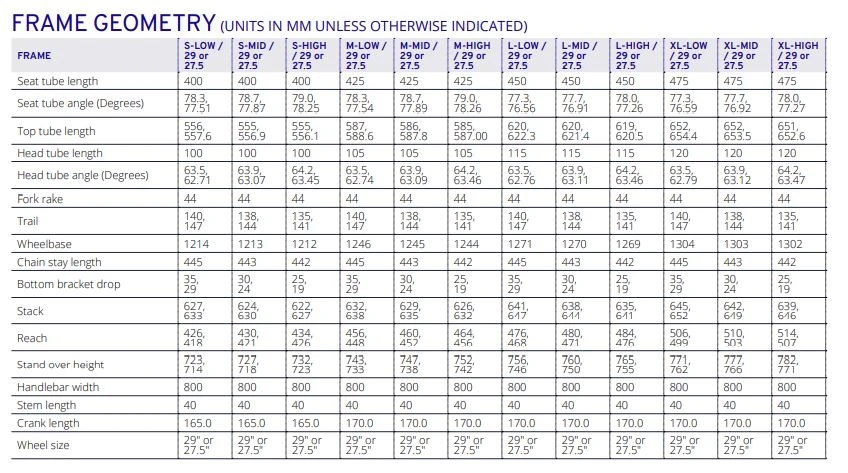 - wheels 29~, possibility of conversion to mullet