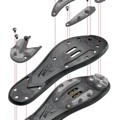 Racing shoes with Carbon-composite sole and unique patented Tecno fastening system 3. Sidi SRS Sole Replacement System.