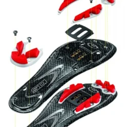 Professional racing shoes with carbon sole, unique patented Tecno 3 fastening system and retractable heel. Removable Sidi SRS sole system.