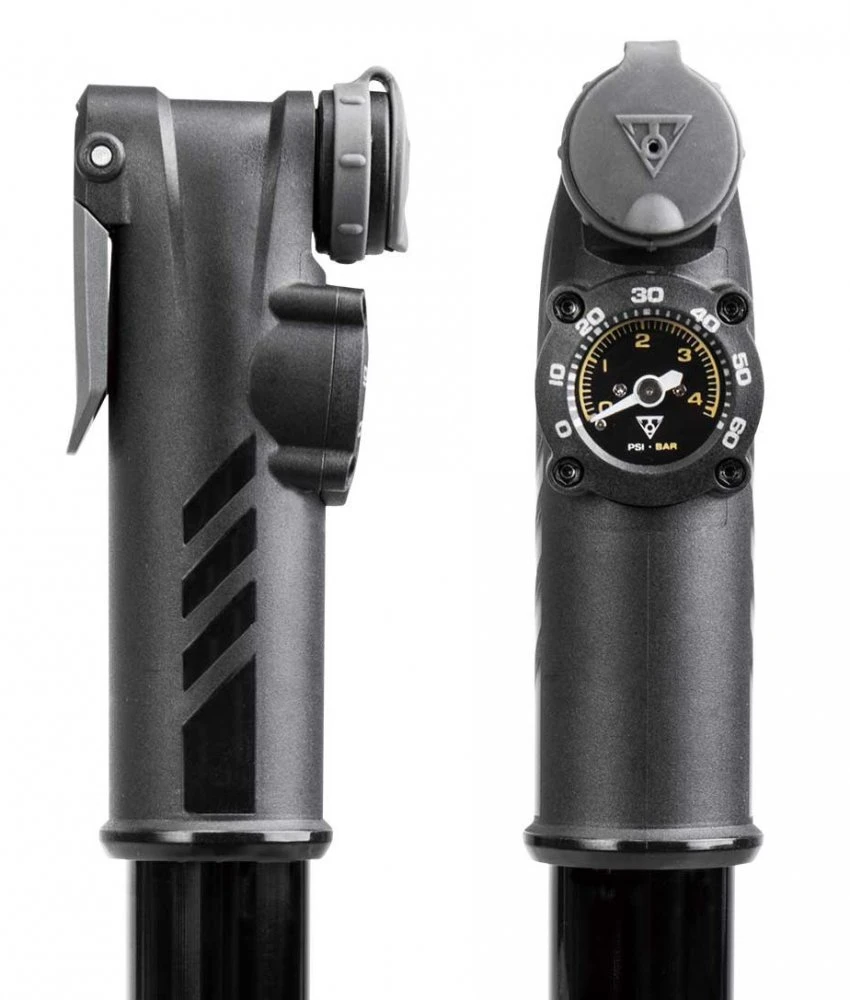 Powerful pocket pump with manometer, aluminum body and plastic handle, uses both strokes to compress the air and save time and effort. Choice of Bicycling 2020 magazine for the best high-volume mini pump.
