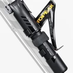 Powerful pocket pump with aluminum body and plastic handle, uses both strokes to compress the air and save time and effort.
