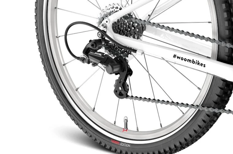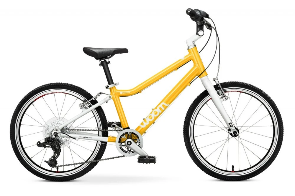 Woom 4 is a light children’s bike with a wheel diameter of 20″. It weighs only 7.7 kg and is intended for children from 6 to 8 years old and 115-130 cm tall (the inside length of the leg should be at least 56 cm).