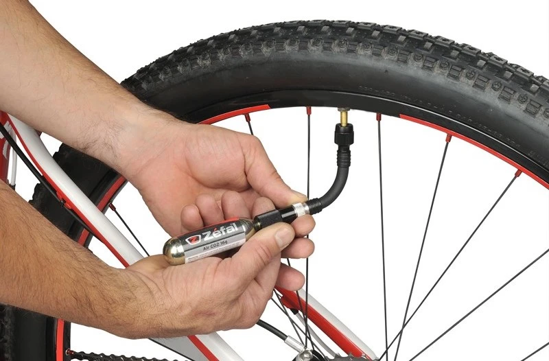 Mini pump for CO2 bombs for easy and fast inflation of the wheel.